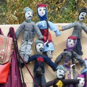 Handgefertigte Puppen in traditioneller armenischer Tracht beim Kloster Haghpat -