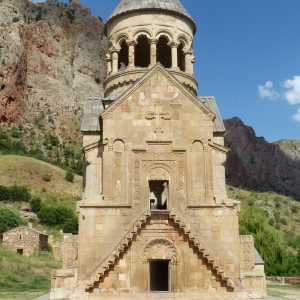 Noravank vor einer steilen Felswand ist für mich die schönste Kirche - eine kleine Mutprobe ist der Besuch der Oberkirche -