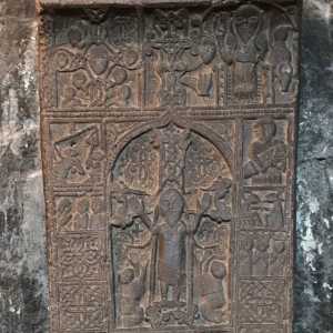 Kreuzsteine sind charakteristisch für Armenien - sie erzählen auf vielfältige Art Szenen aus der Bibel - hier ein Beispiel vom Sevan-See -